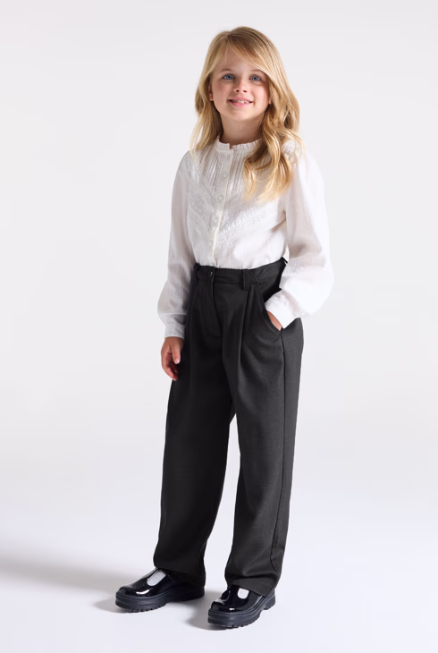 Antracit sive hlače klasičnog kroja s naborima za djevojčice