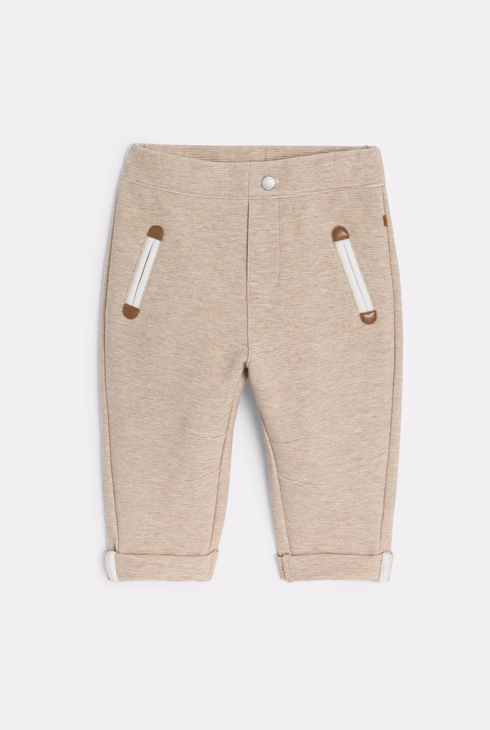 Bež hlače od rebraste pletene tkanine, jednostavne za oblačenje, za bebe dječake