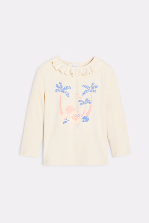 Bež majica s ovratnikom u obliku volančića i UV zaštitom za bebe djevojčice