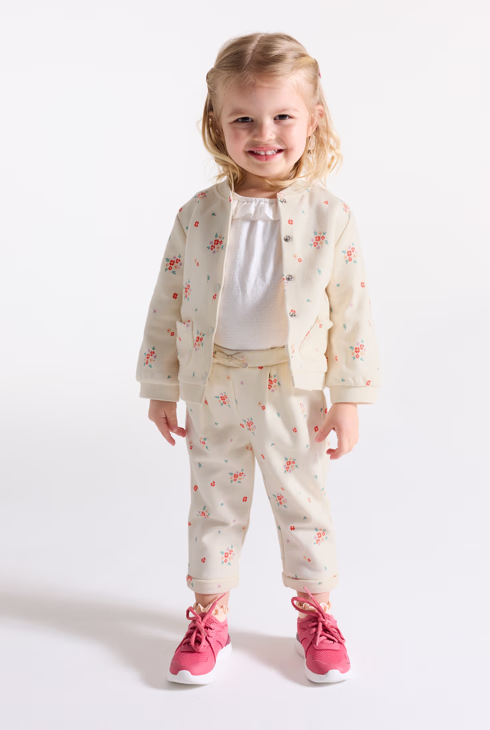Bež teddy jakna s cvjetnim uzorkom od flisa za bebe djevojčice