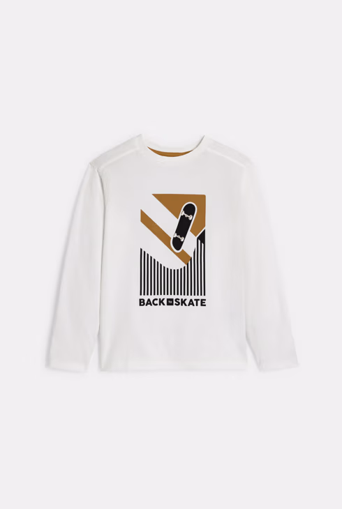 Bijela majica dugih rukava s motivom skateboarda za dječake