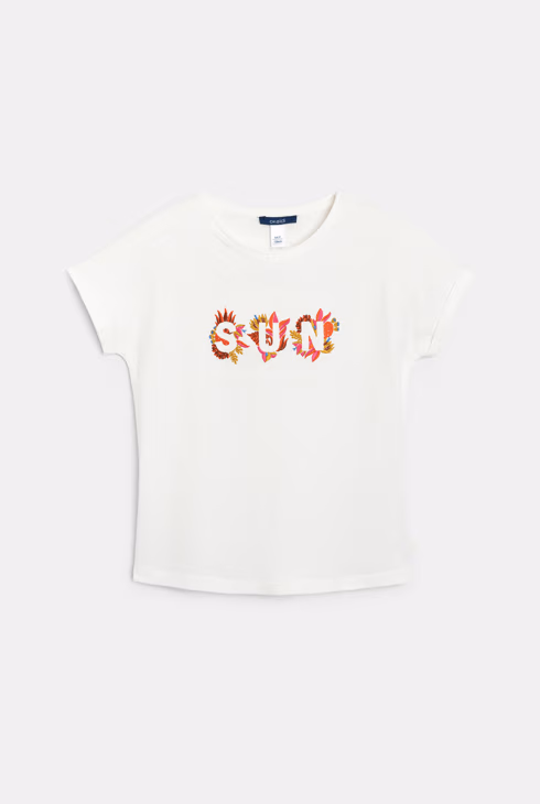 Bijela majica kratkih rukava s izvezenim motivom za djevojčice