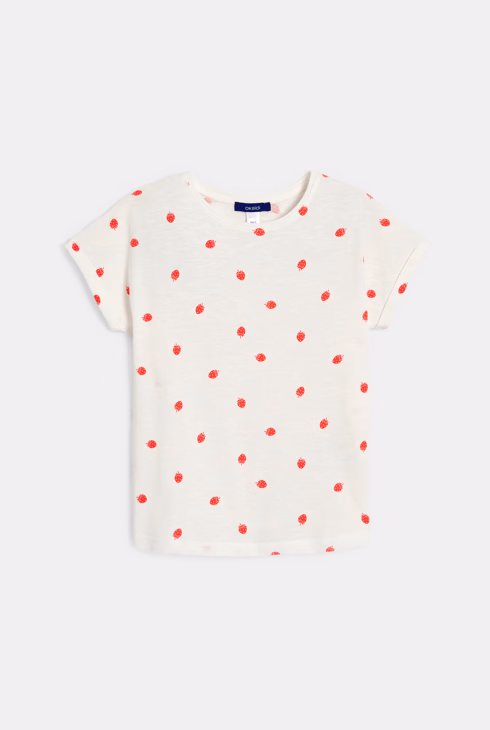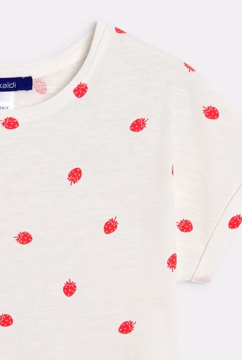 Bijela majica kratkih rukava s motivom jagoda za djevojčice