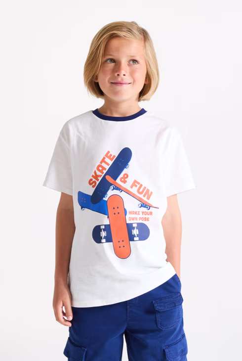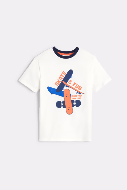 Bijela majica kratkih rukava s motivom skateboarda za dječake