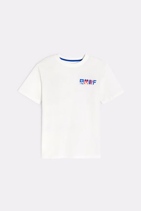 Bijela majica kratkih rukava s natpisom surf za dječake