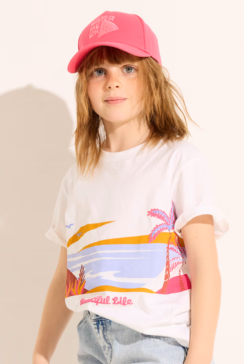Bijela majica kratkih rukava s panoramskim motivom za djevojčice