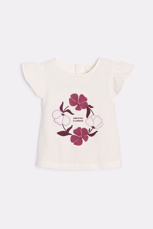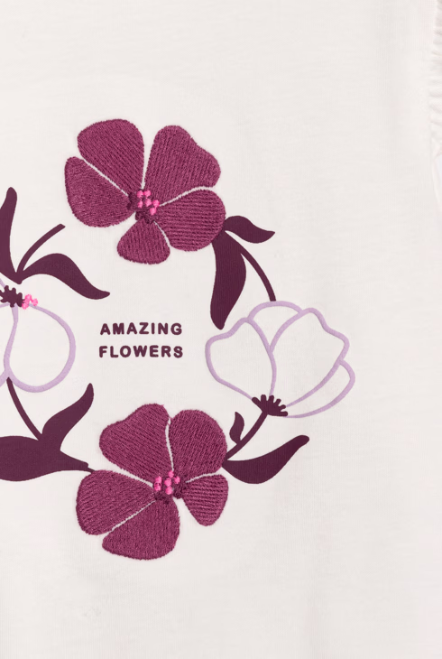 Bijela majica kratkih rukava s volančićima i cvjetnim uzorcima za bebe djevojčice