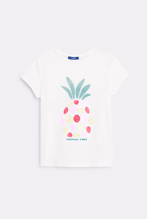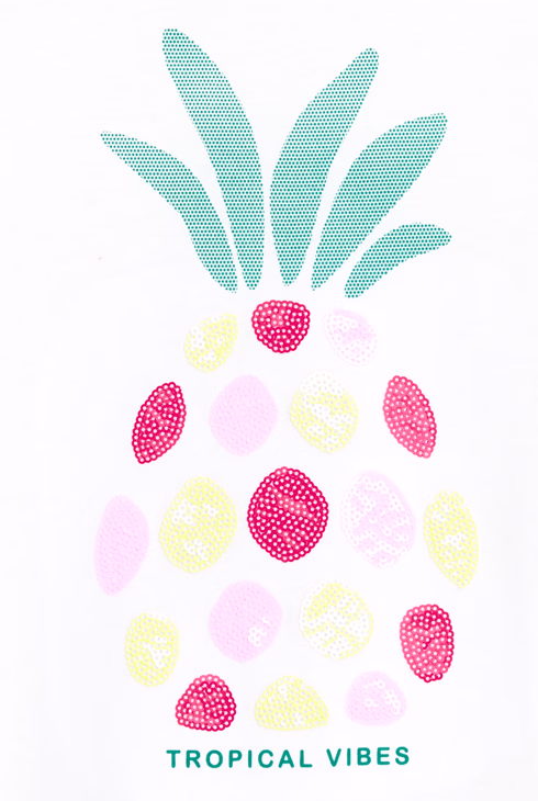 Bijela majica kratkih rukava sa šljokicama za djevojčice