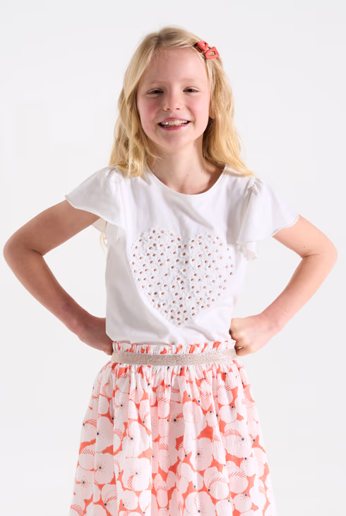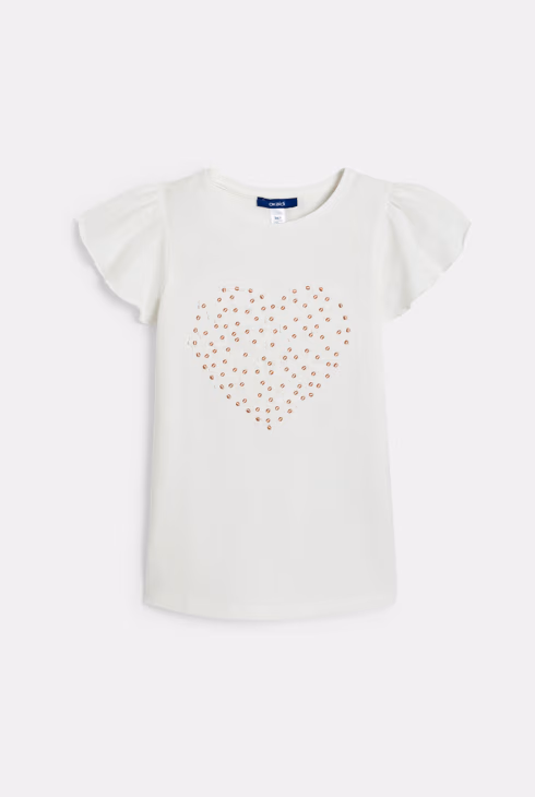 Bijela majica s leptir rukavima i s motivom srca za djevojčice