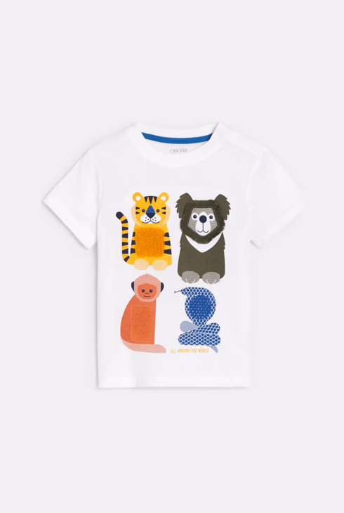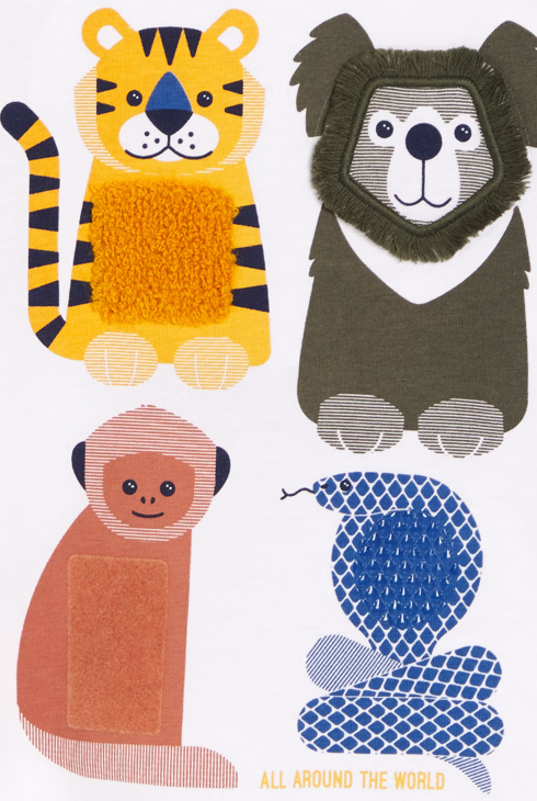 Bijela majica s motivom životinja za osjetilnu stimulaciju za dječake