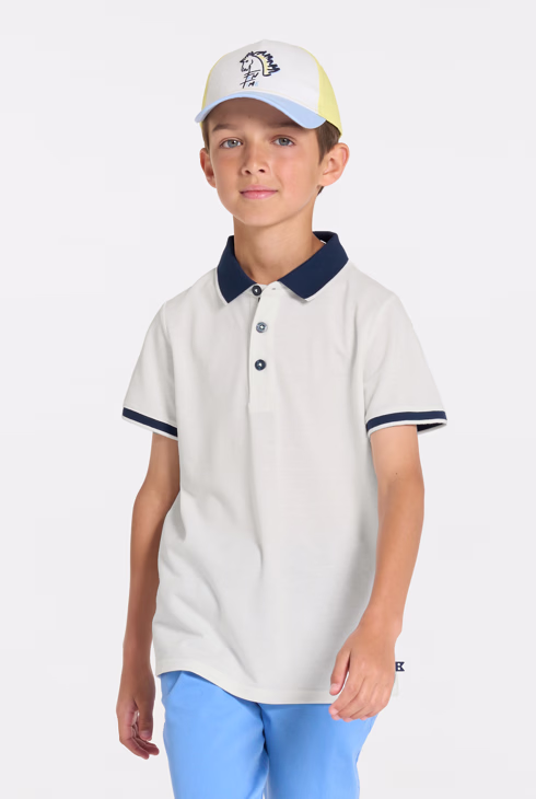 Bijela polo majica kratkih rukava od pike žerseja s uzorkom za dječake
