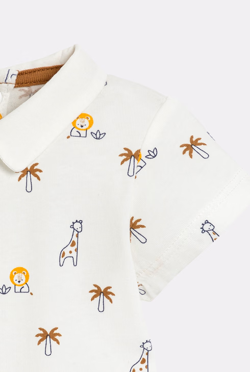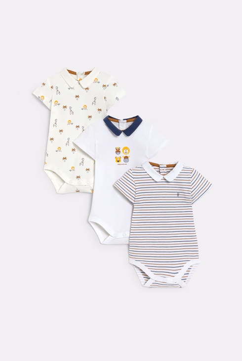 Bijeli bodi kratkih rukava s malim ovratnikom i uzorkom životinja za bebe dječake (komplet od 3 komada)