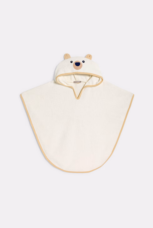 Bijeli frotirni ručnik za kupanje s kapuljačom i motivom medvjeda za bebe, uniseks