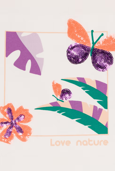 Bjeličasta majica kratkih rukava s motivima od šljokica za djevojčice.