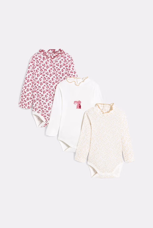 Bodi dugih rukava s malim ružičastim ovratnikom za djevojčice (komplet od 3 komada)