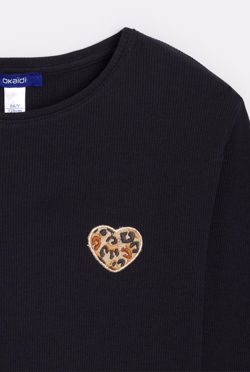 Crna majica dugih rukava s motivom srca u leopard uzorku za djevojčice
