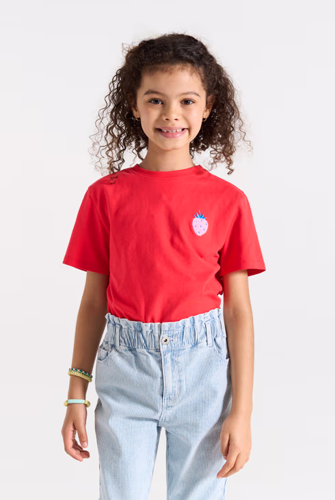 Crvena majica kratkih rukava s motivom jagode za djevojčice
