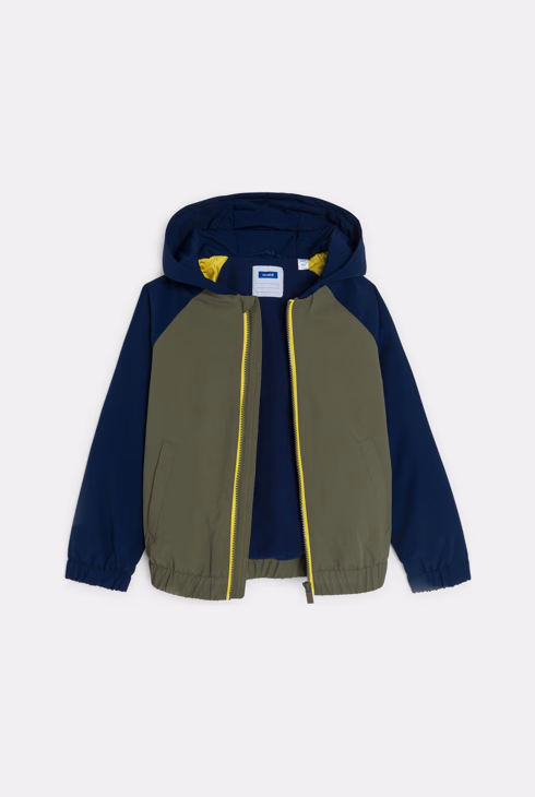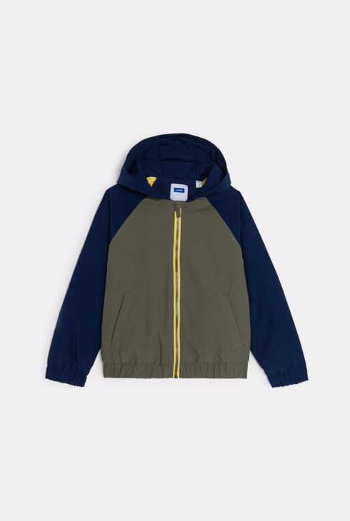 Jakna s kapuljačom za dječake s podstavom od flisa kaki boje