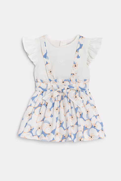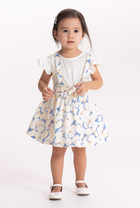 Komplet s cvjetnom suknjom na naramenice i bijelom majicom za bebe djevojčice