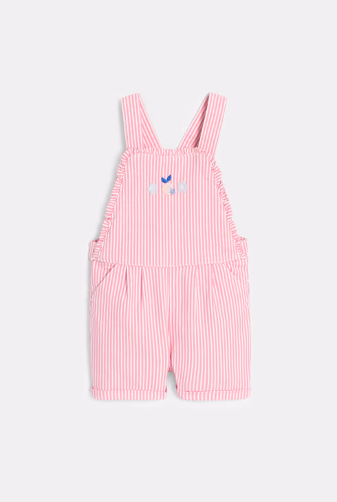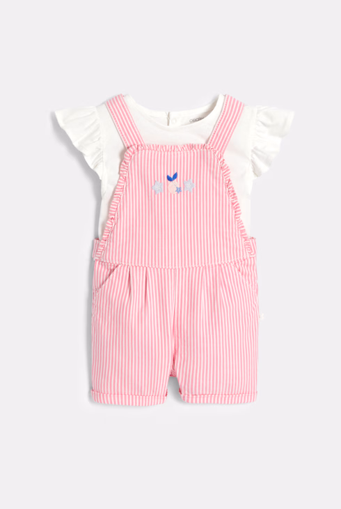 Kratke ružičaste prugaste hlače na tregere i bijela majica kratkih rukava za bebe djevojčice