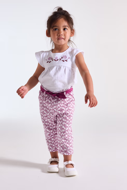 Lagane pamučne hlače s ljubičastim cvjetnim uzorkom za bebe djevojčice