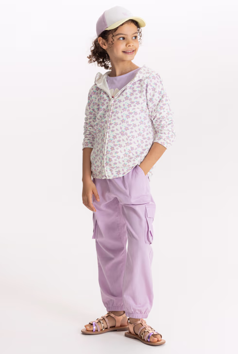 Ljubičasta dukserica s cvjetnim uzorkom od mekanog flisa za djevojčice