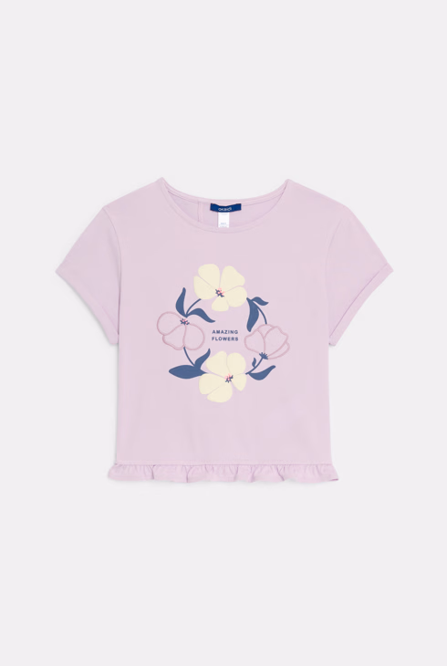 Ljubičasta majica kratkih rukava s cvjetovima za djevojčice