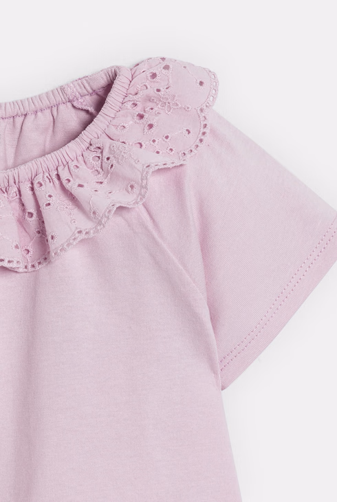 Ljubičasta majica s izvezenim ovratnikom za djevojčice