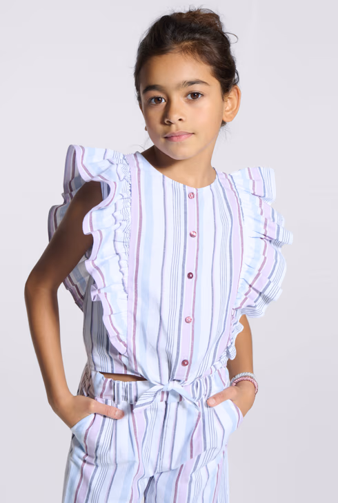 Ljubičasta prugasta bluza s volanima za djevojčice