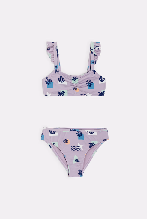 Ljubičasti dvodijelni kupaći kostim s uzorkom za djevojčice