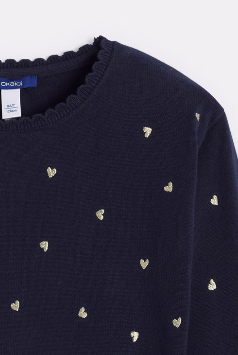 Mornarskoplavi pulover sa srcima za djevojčice