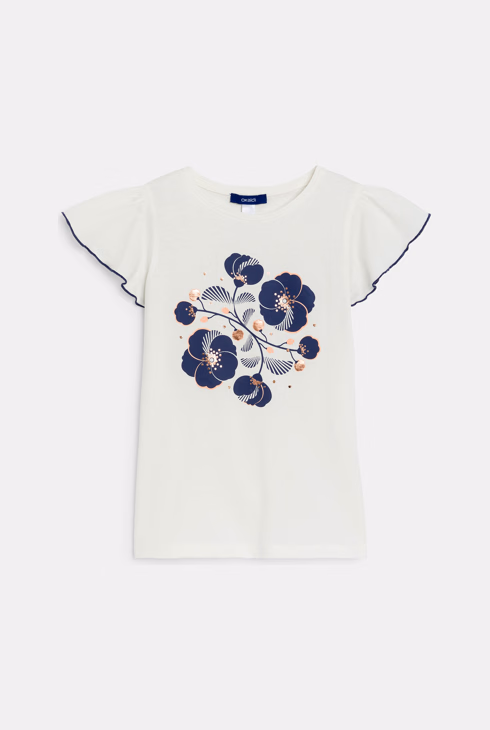 Narančasta majica kratkih rukava s leptir rukavima i svjetlucavim motivom za djevojčice