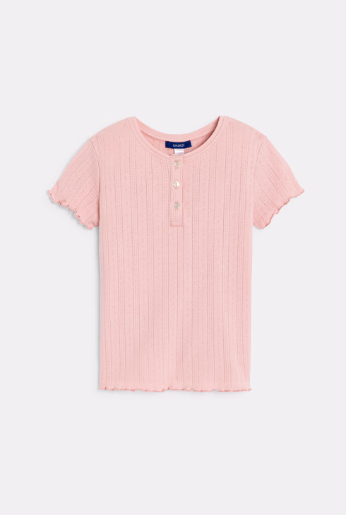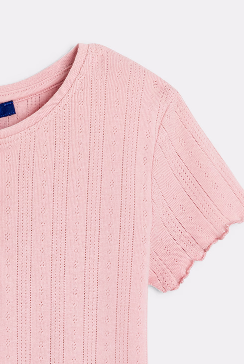 Pastelno ružičasta jednobojna majica kratkih rukava s dekorativnim rupičastim uzorkom za djevojčice