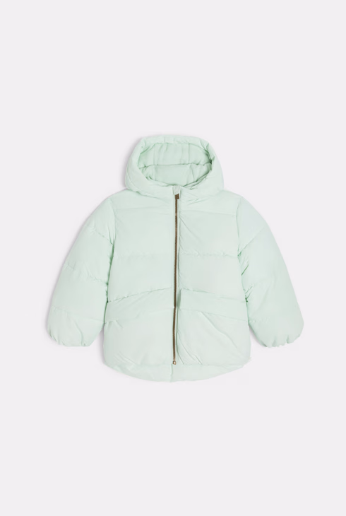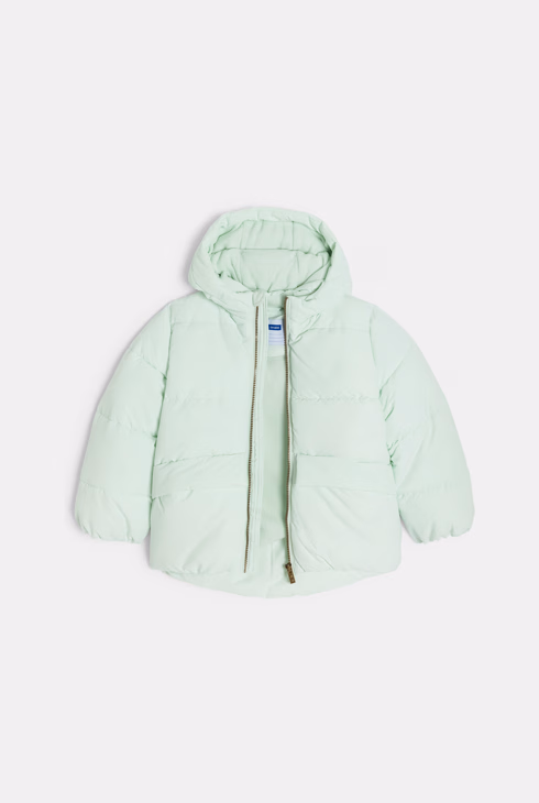 Pastelno zelena podstavljena pernata jakna od upijajuće tkanine s kapuljačom za djevojčice