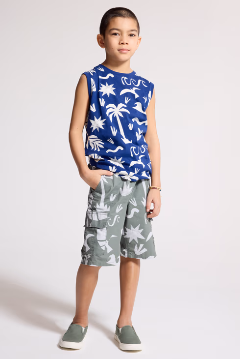 Platnene kaki bermuda hlače s printom za dječake