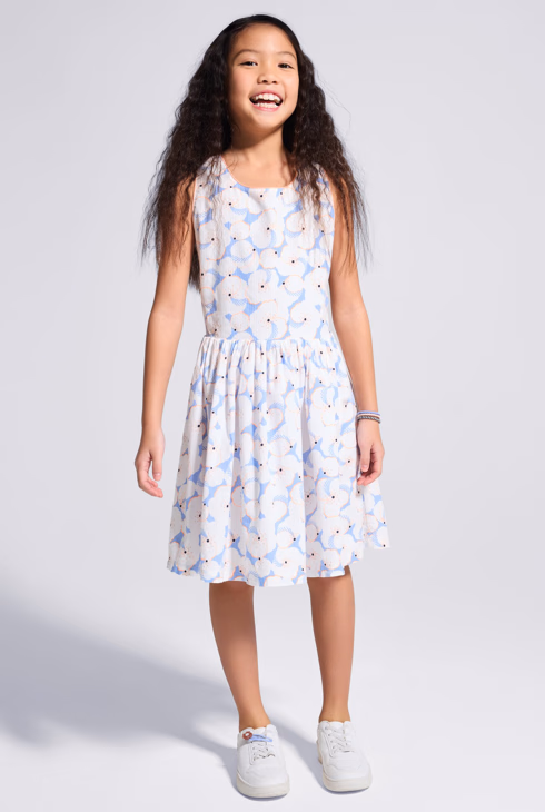 Plava elegantna haljina zvonastog kroja s uzorkom za djevojčice