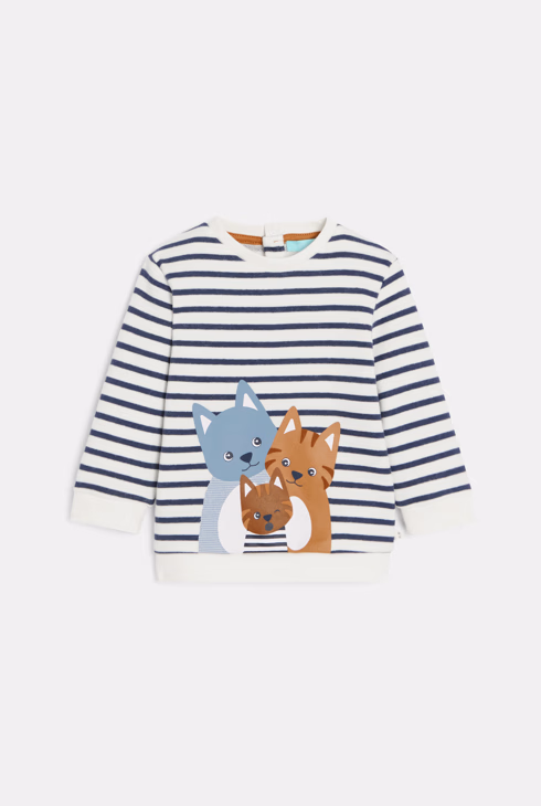 Plava prugasta sportska majica od flisa s motivom mačke za dječake