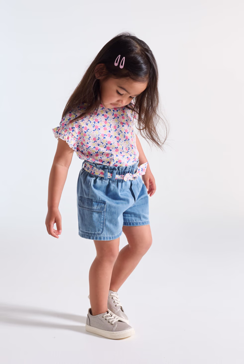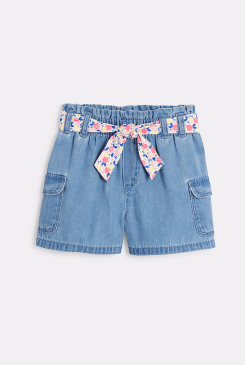 Plave cargo kratke hlače od laganog trapera s cvjetnim pojasom za bebe djevojčice