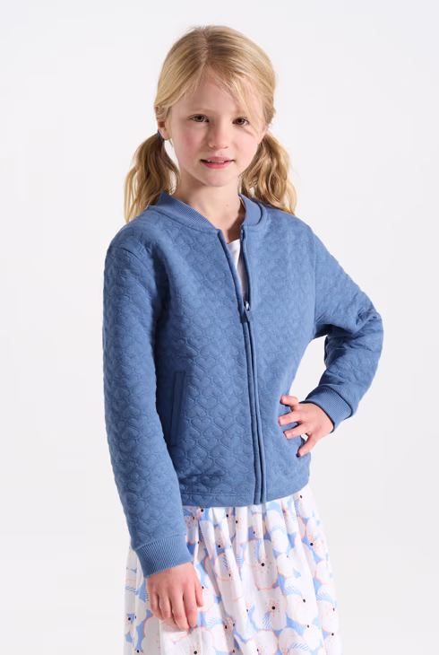 Plavi prošiveni kardigan s motivom srca za djevojčice