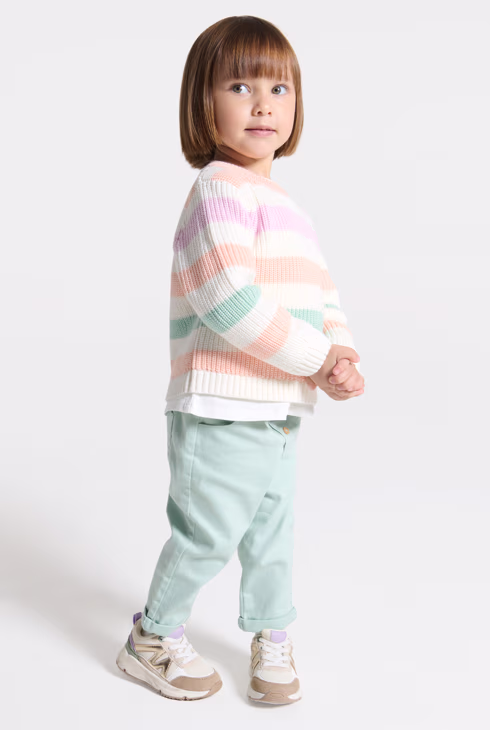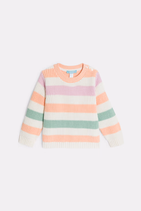 Pleteni pulover na raznobojne pruge za bebe djevojčice