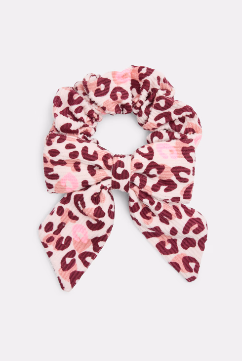 Ružičasta gumica za kosu s mašnom i leopard uzorkom za djevojčice