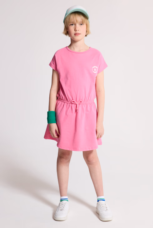 Ružičasta ljetna haljina od žerseja s motivom na leđima za djevojčice