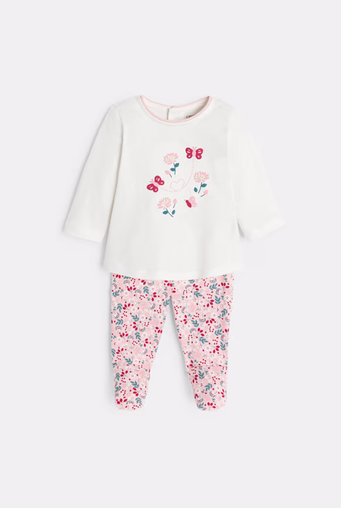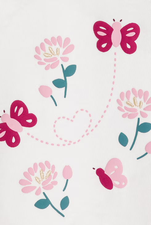 Ružičasta pidžama s motivima cvijeća i leptira za djevojčice