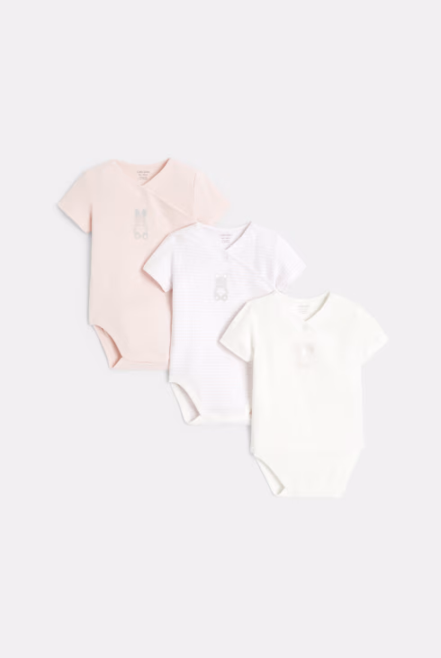 Ružičasti bodi na preklop (komplet od 3 komada) za novorođenčad