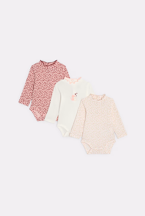 Ružičasti bodi s leopard uzorkom za djevojčice (pakiranje od 3 komada)