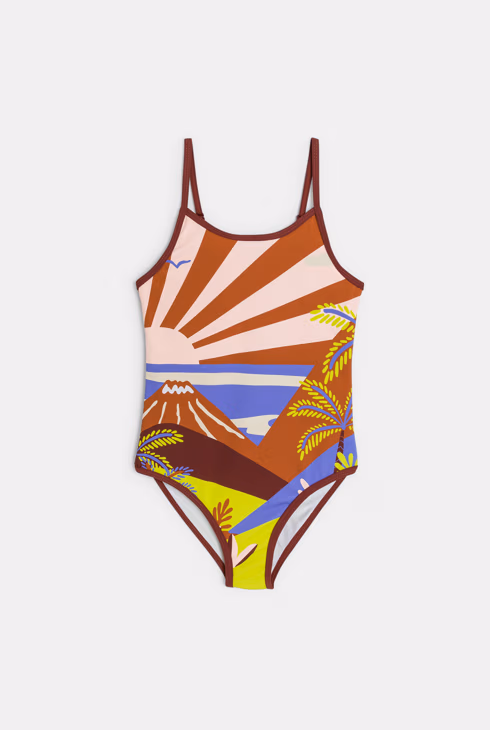 Ružičasti jednodijelni kupaći kostim s motivom krajolika za djevojčice