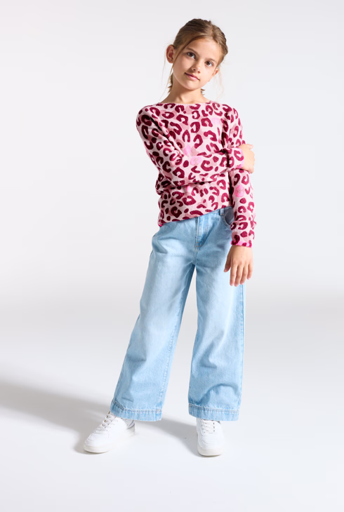 Ružičasti pulover s printom leoparda za djevojčice
