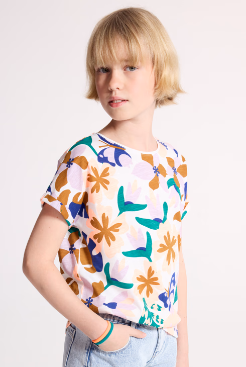 Šarena majica kratkih rukava s cvjetnim motivima za djevojčice
