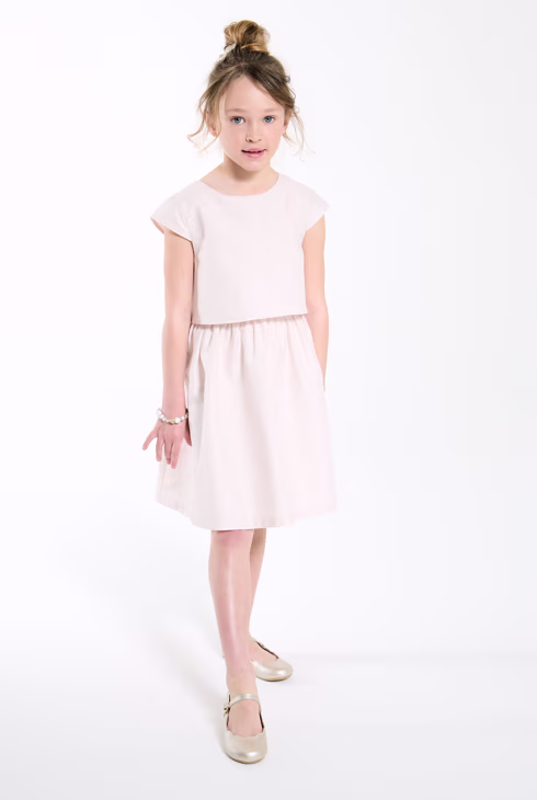 Šik blijedo ružičasta svjetlucava haljina od pamuka i lana za djevojčice