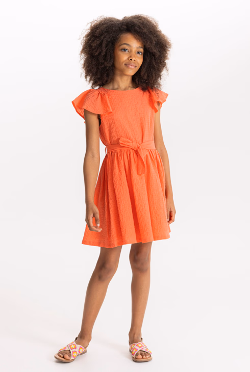 Šik narančasta haljina s leptir rukavima za djevojčice